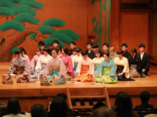 関東にある宝生流能楽サークルはすべて関東宝生流学生能楽連盟(通称:関宝連、かんぽうれん)という団体に所属しています。70年以上の歴史を誇るこの連盟には、現在東大の他に慶應、國學院大、相模女子大、自治医科大、実践女子大、十文字中高、白百合女子大、日本女子大、早稲田(シテ方・ワキ方下懸)が加盟しています。この連盟で半年に一度、水道橋にある宝生能楽堂で発表会をさせて頂いており、大勢のお客さんの前でお稽古の成果を発揮したり他の大学の方の芸を鑑賞したりする、とても貴重な場になっています。各校を指導されている先生方や他大の方との打ち上げでもぶち上がり、アドレナリン出まくりな興奮冷めやらぬ一日になります!